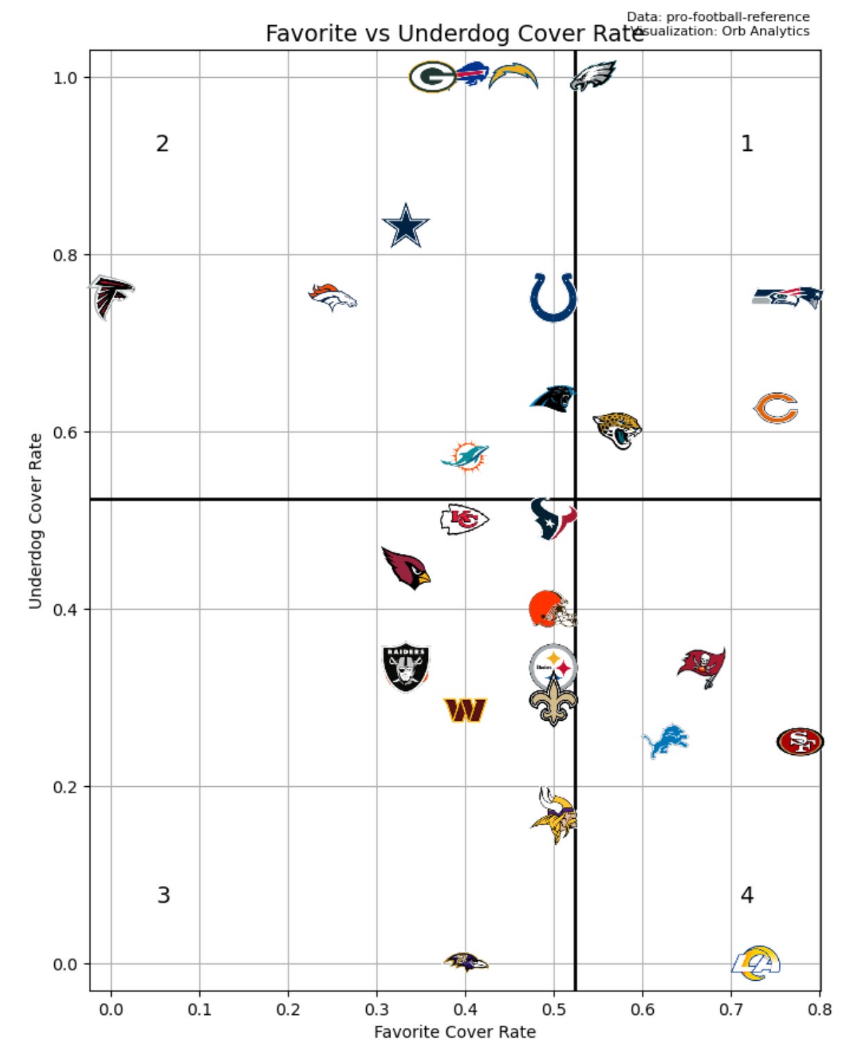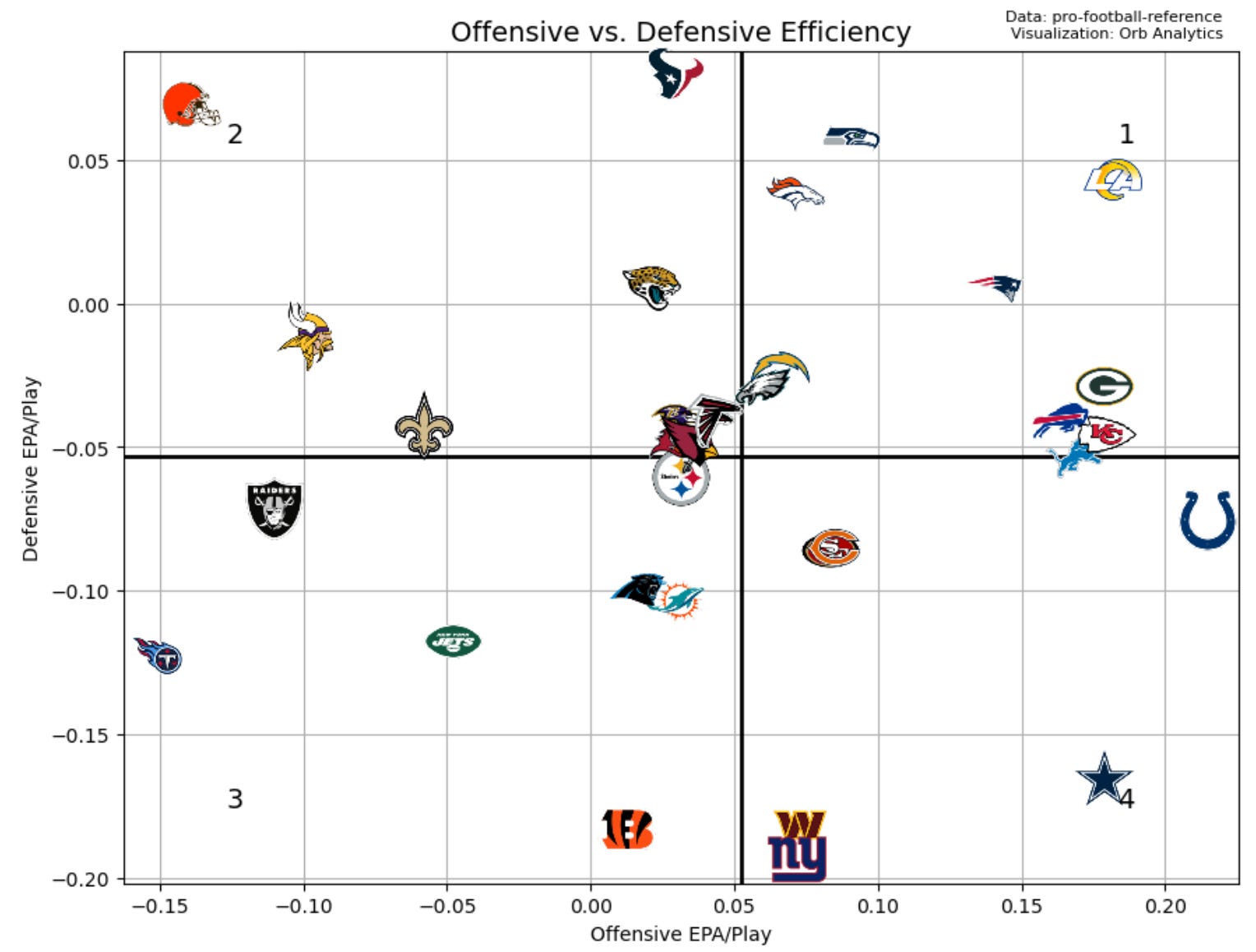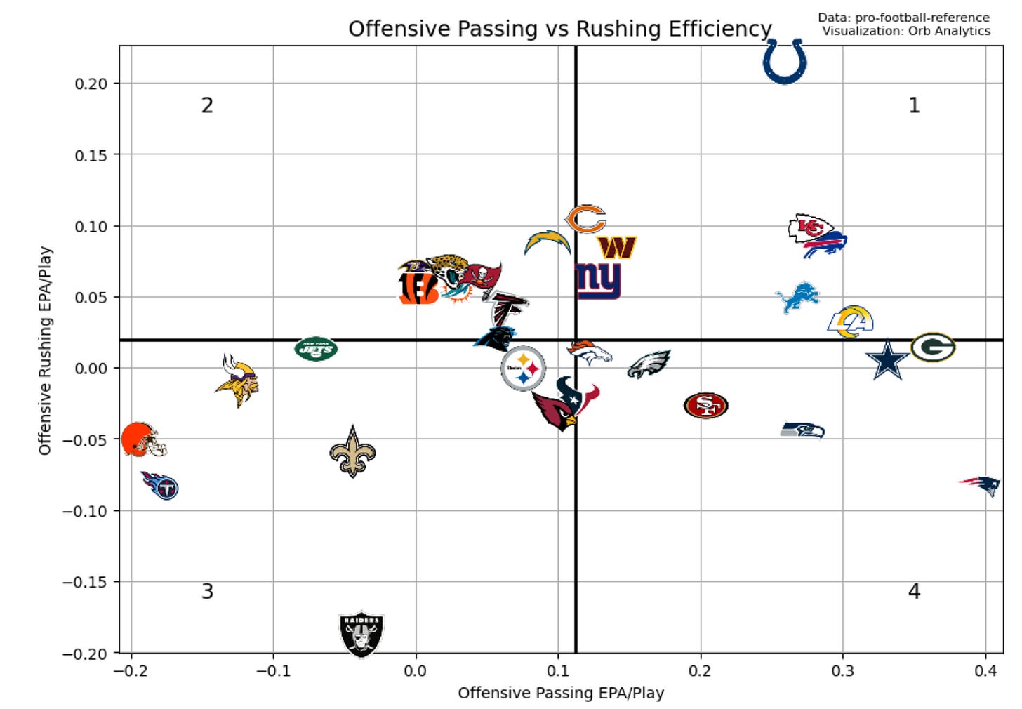Quadrant 4: Above average passing/Below average rushing
