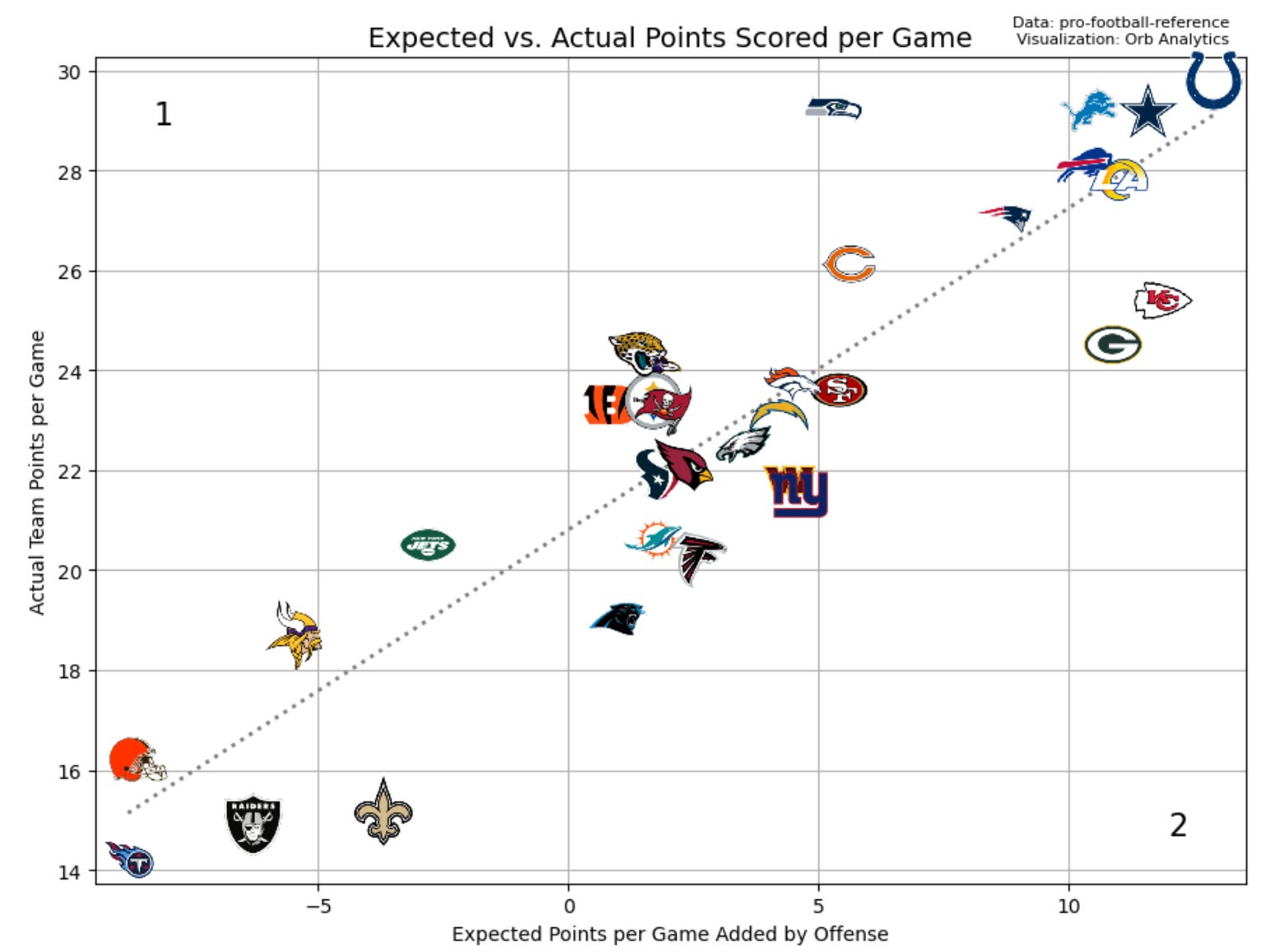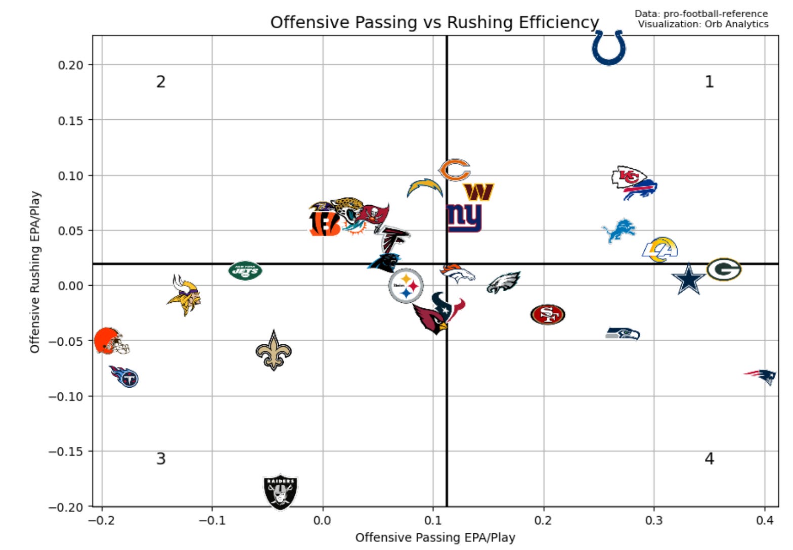 Quadrant 1: Above average passing/Above average rushing