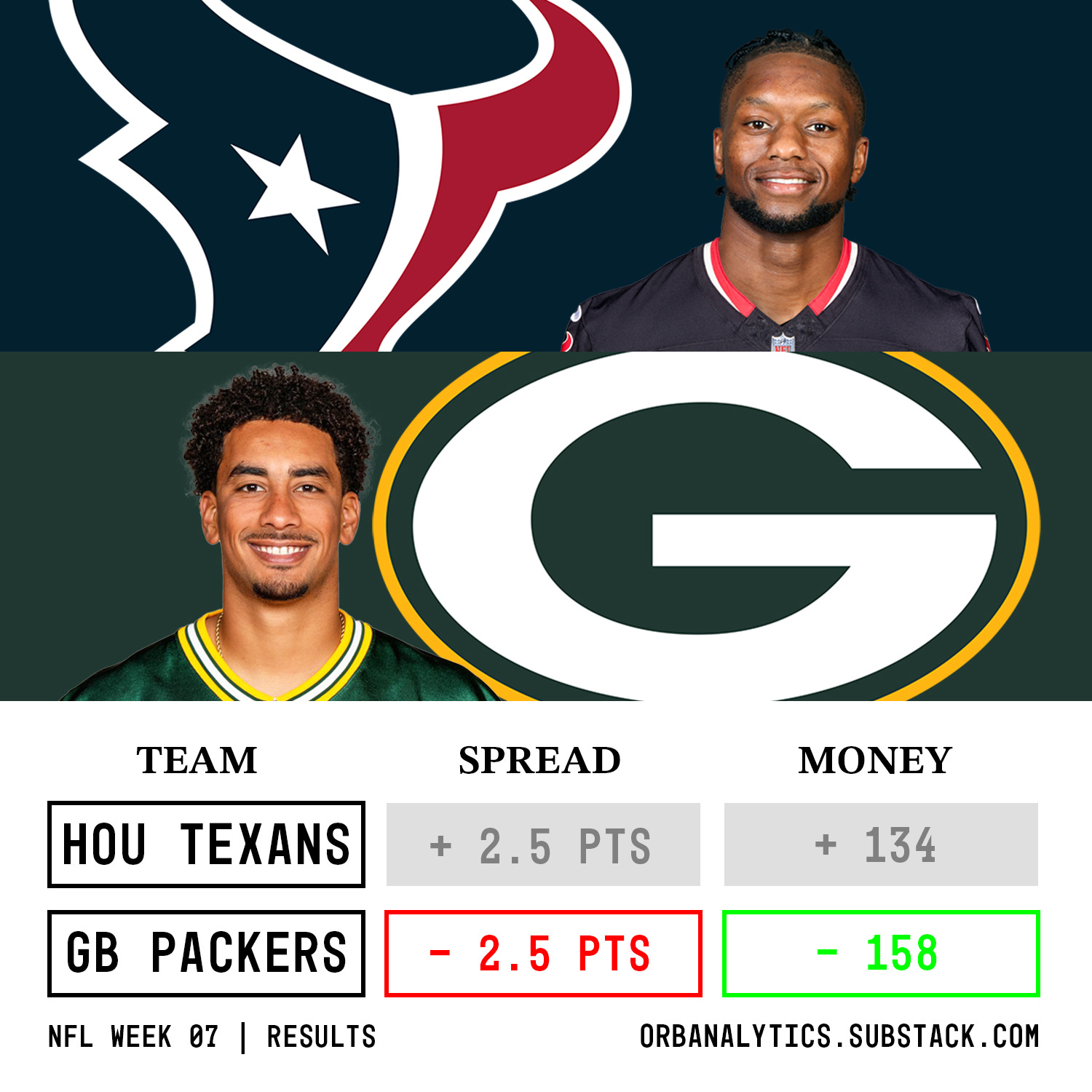 Packers -2.5 ❌