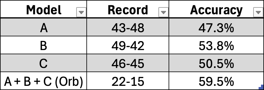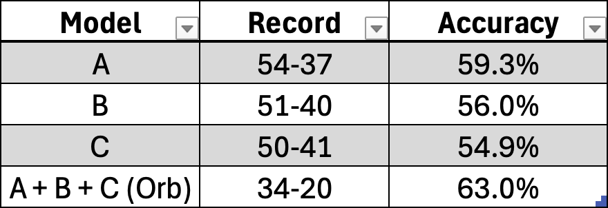 Official Orb Picks Season Results: