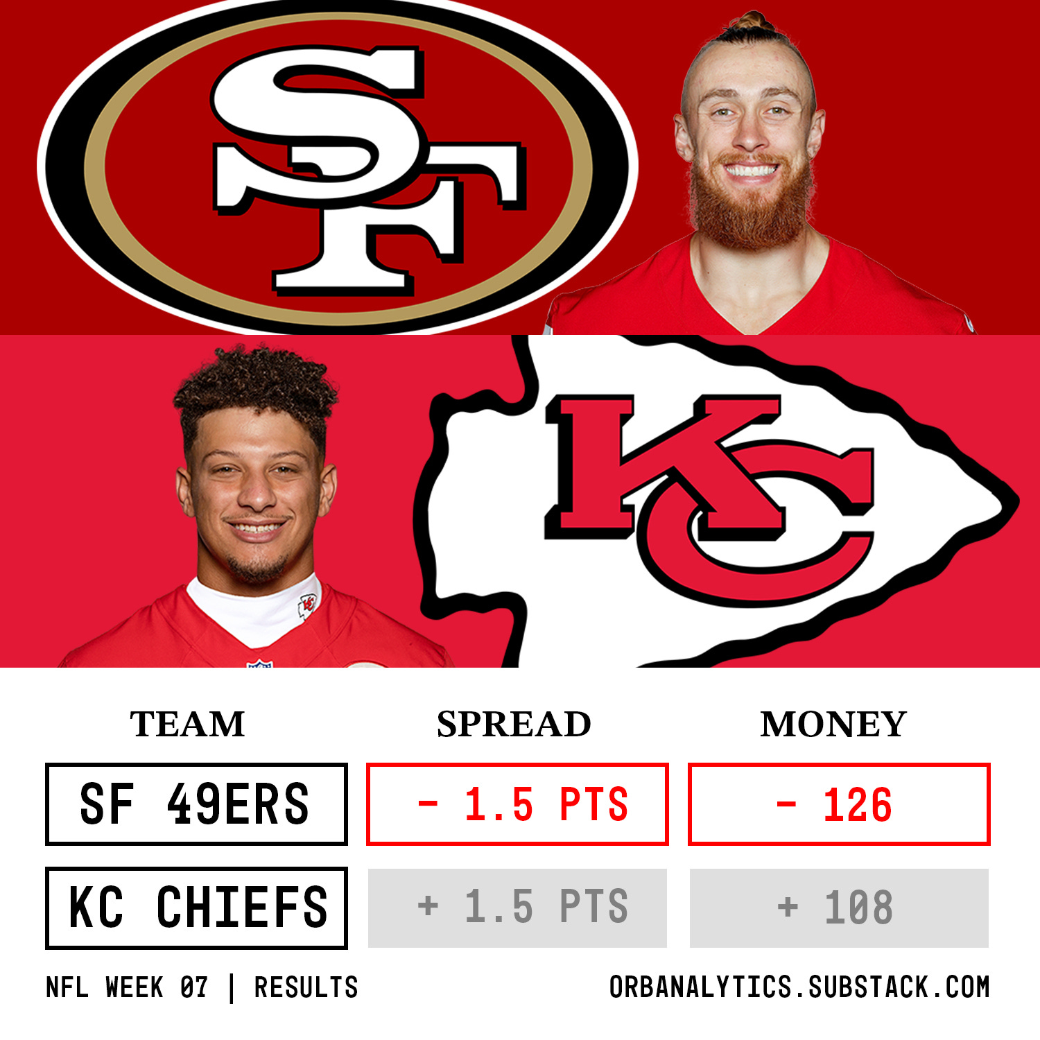 49ers -1.5 ❌