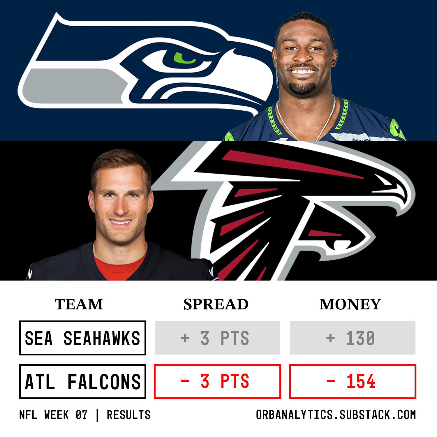 So overall the Orb is 9-1, 90%, +7.181 units on premium picks through week 7! Let’s see if our models can make it 10 in a row and keep the dream alive on their next non-Sunday pick.