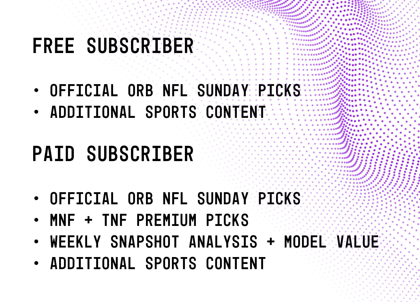 As mentioned above, this streak of premium spread wins is getting a little crazy. I have tried looking deeper into the numbers to see if there is any sort of rhyme or reason as to why the models are performing so much better on non-Sunday games and I can’t find one. We are still just six weeks into the Orb official season so with a small sample size we can see crazy outlier events like this. Ideally by the end of the season over a larger sample size, the Orb’s performance on Sunday vs. non-Sunday picks should be more similar. That is not to say that the Orb will start hitting on Sundays at the rate that it has on premium games, but more likely we may start to see more misses on Thursdays and Mondays. I would love it if this winning streak continues forever and we can continue to give our paid subscribers winners every week, but we always want to be realistic and transparent about probabilities when trying to predict future outcomes. Remember, the Orb doesn’t make picks on every game, it only does when all of our models agree on the same outcome. That is why there hasn’t been an Orb spread pick for every single Thursday and Monday game. Here is how our non-Sunday premium picks have performed so far this season: